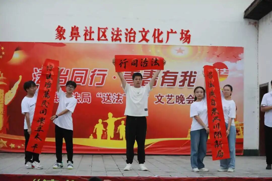 ▲在龙山县华塘街道象鼻社区开展大学生法治村晚文艺汇演。