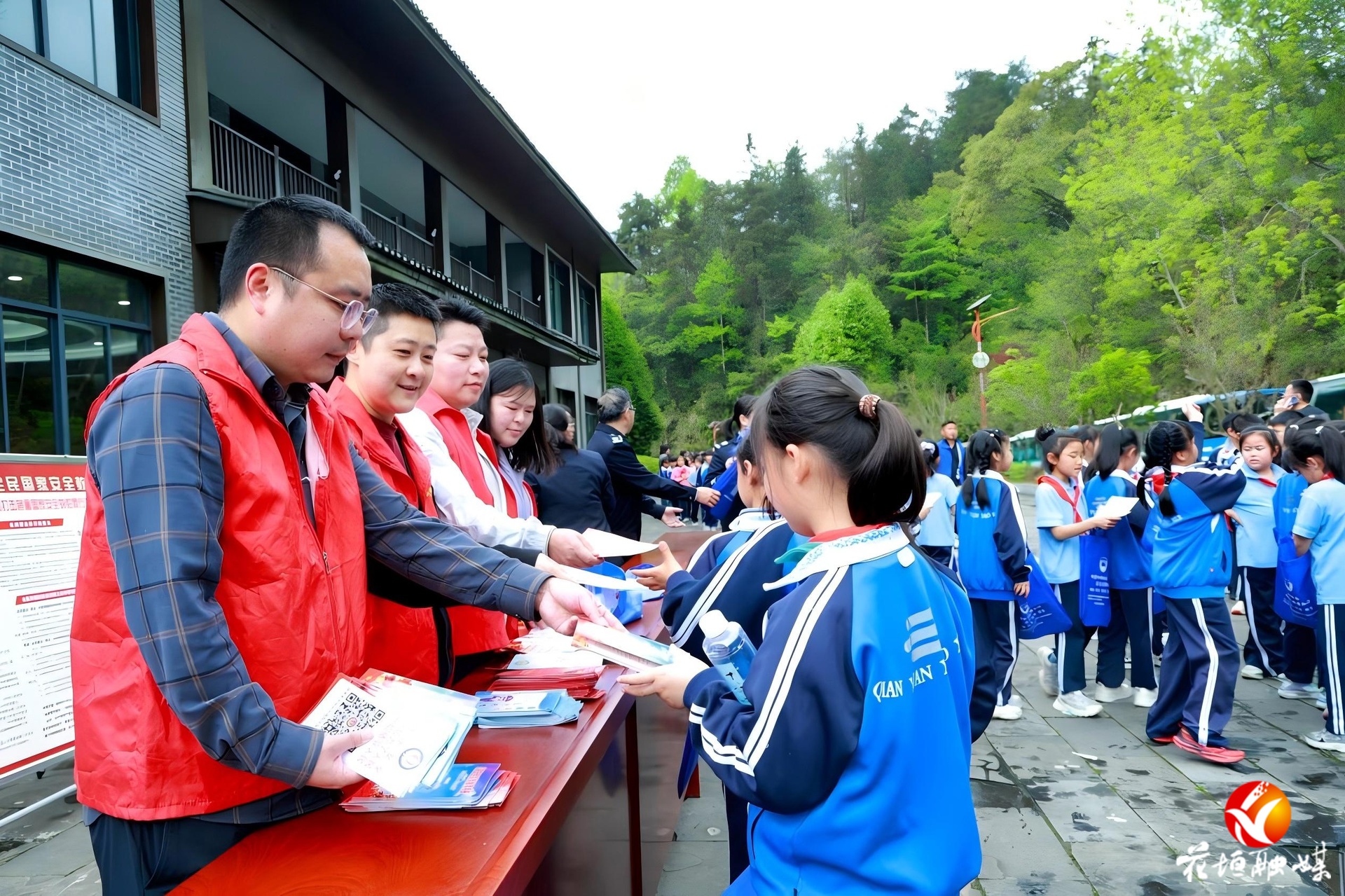 活动现场,宣传形式丰富多元、层层递进。在精准扶贫主题陈列馆前,志愿者们搭建咨询台、摆放宣传展板,向过往游客、研学师生发放图文并茂的国家安全知识宣传手册,结合展板内容,细致讲解总体国家安全观、政治安全、社会安全等核心知识,让大家直观了解国家安全基本内涵。针对梨子寨、苗绣基地游客流动性强的特点,志愿者们穿梭在人群中发放宣传资料,与景区群众、游客,研学师生一起共话国家安全知识,着力营造人人维护国家安全的浓厚氛围。